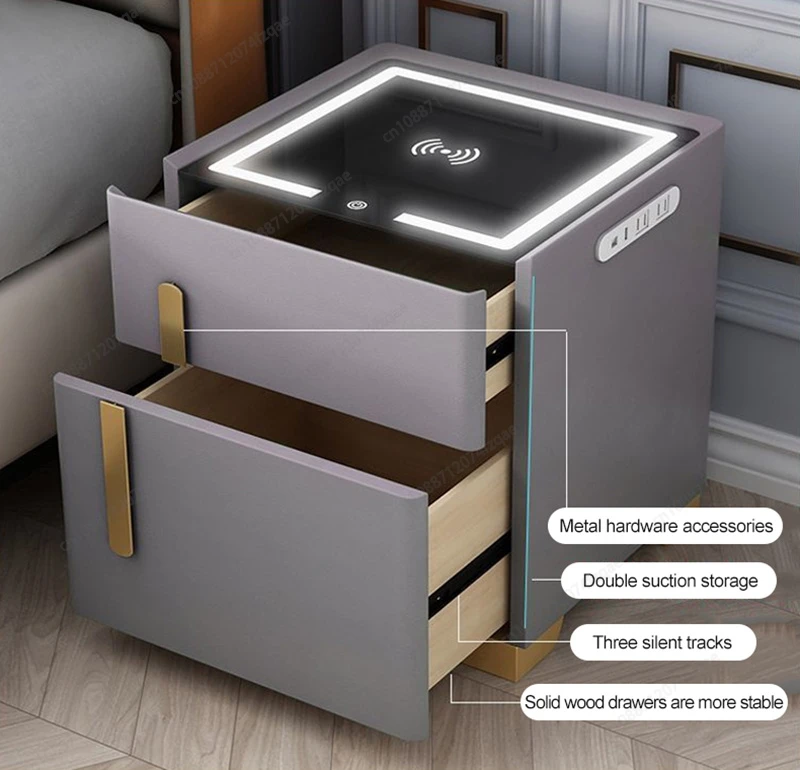 Eco-Friendly Material: Crafted from MDF/fiberboard, this table is not only durable but also environmentally friendly, meeting E1 protection standards.Nordic Style Aesthetic: With its clean lines and natural wood tones, this table adds a touch of Nordic simplicity to any bedroom decor.Spacious Storage: The compact design doesn't compromise on storage, offering a drawer for essentials and a spacious desktop for your bedtime necessities.Multifunctional Design: This bedside table combines style with function, featuring LED light, wireless charging, and USB charging options for convenient use at night.Paint-Free Finish: The table boasts a paint-free finish, ensuring a fresh, modern look without the hassle of painting.